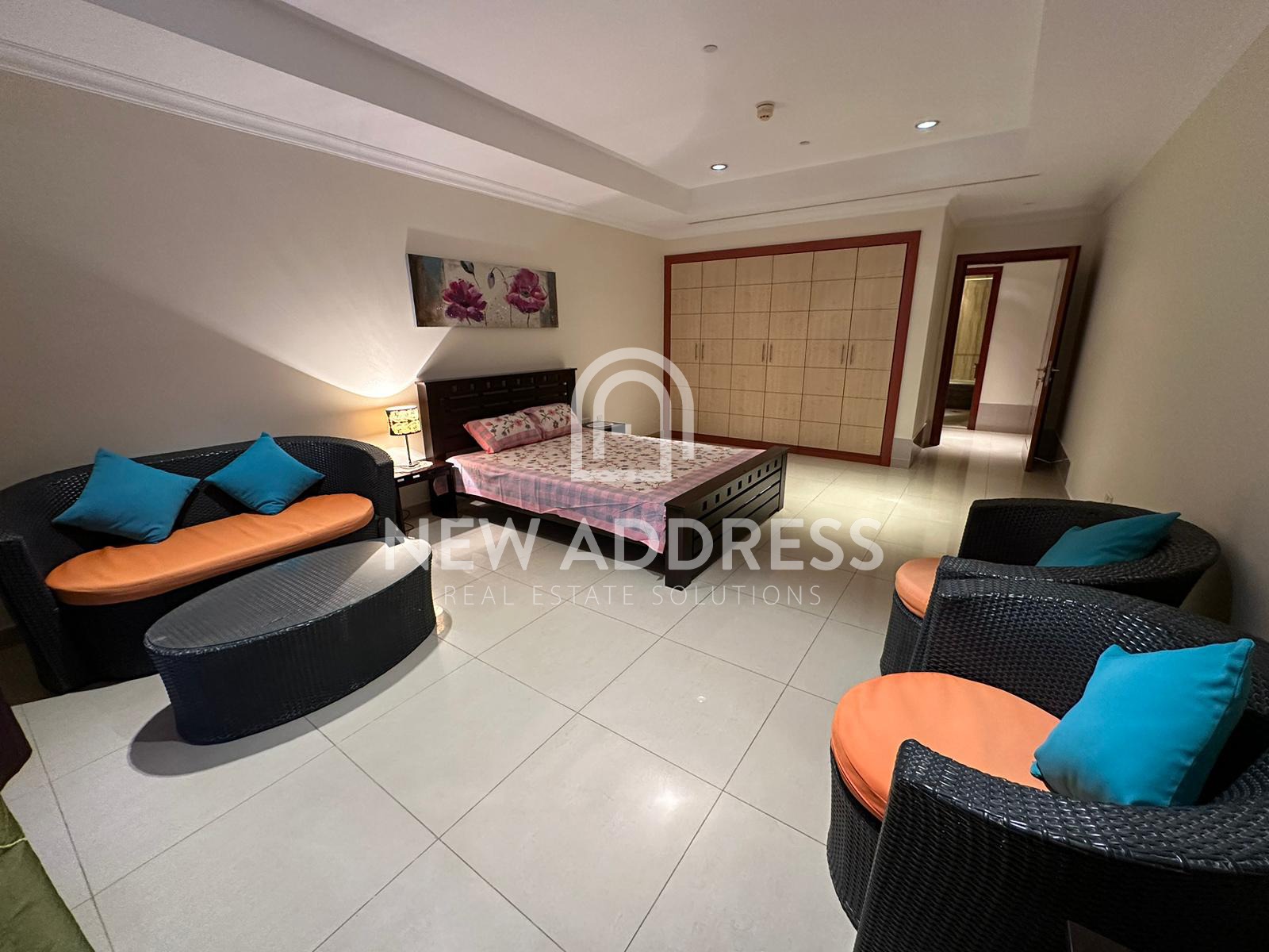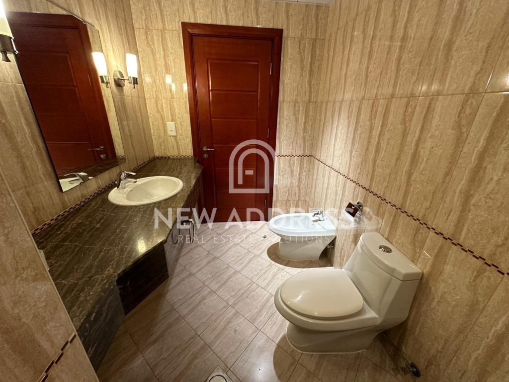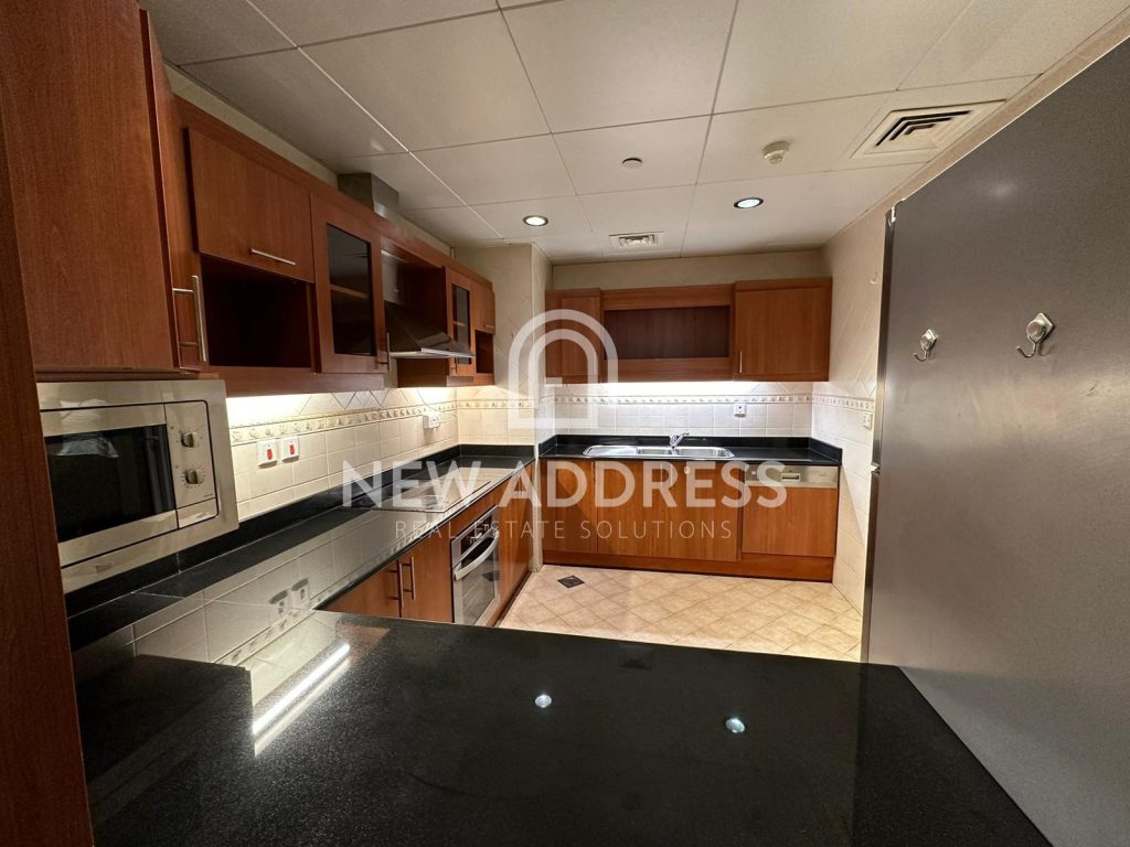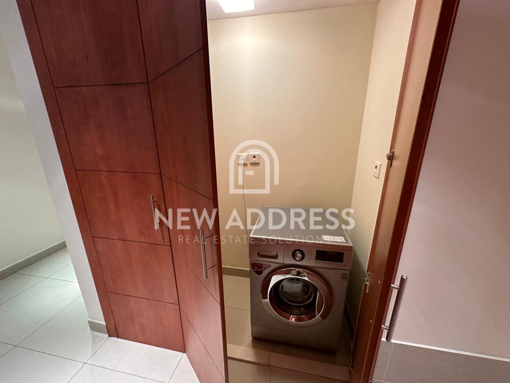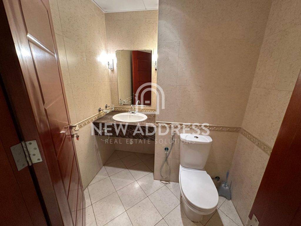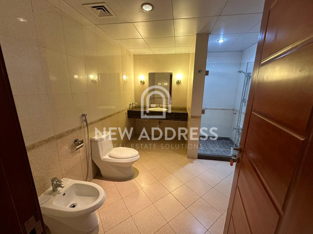 This bright 2 bedroom apartment is located in tower , and consists of 1 master bedroom with attached master toilet , 1 common toilet for second bedroom and guest bathroom, large living room, kitchen, and very spacious balcony connected with both bedrooms and majlis .